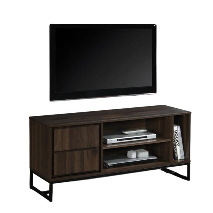 Cinzia Wooden Small TV Stand Entertainment Unit 120cm 3-Shelves Columbia Walnut/Black