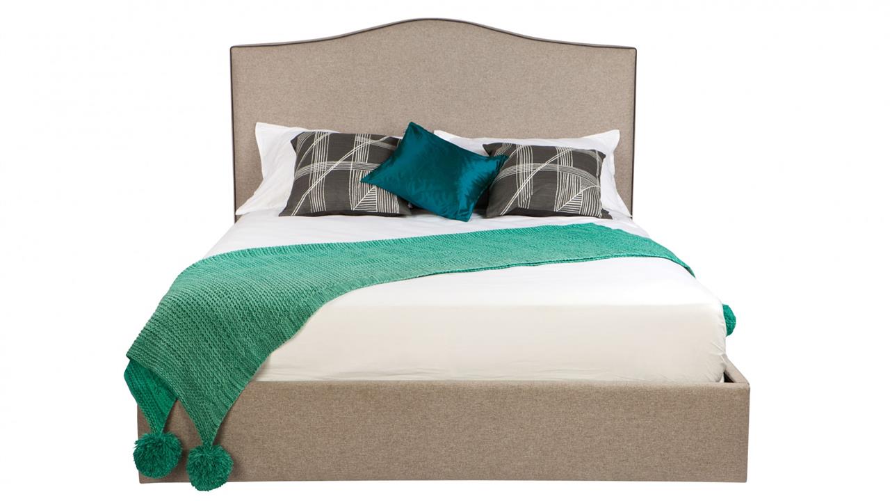 Cronulla custom upholstered bed with choice of standard base