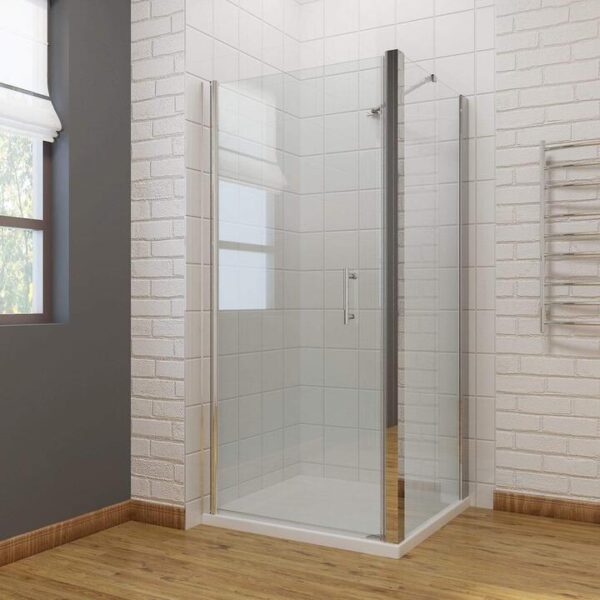 Elegant Showers Frameless Pivot Shower Screen with an upscale frameless look and free swing doors help every DIY designer to enhance any bathroom style on an affordable budget. Corner installation providing a space-effective solution to any compact bathroom.