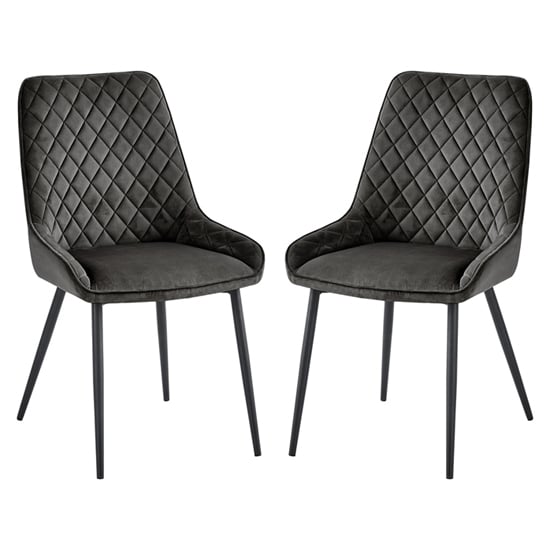 Transform your dining space with the Furniture in Fashion Sanford Gun Metal Grey Velvet Dining Chairs, where plush comfort meets modern sophistication. Upholstered in soft, rich grey velvet with a subtle gunmetal sheen, these chairs add a touch of elegance and depth to any dining room. Their sleek design and premium fabric make them perfect for elevating both casual meals and special occasions. Built for durability and style, the Sanford dining chairs feature sturdy frames and ergonomic support, ensuring comfortable seating for extended dining experiences. Sold in pairs, these chairs effortlessly blend luxury with practicality, making them an ideal choice for stylish homes seeking both comfort and contemporary appeal. The Furniture in Fashion Sanford Gun Metal Grey Velvet Dining Chairs combine plush comfort with contemporary elegance. Their stylish design and durable construction make them a standout choice to enhance any modern dining space. FEATURES : Material : Velvet, Metal Finish : Gun Metal Grey Pack of two upholstered dining chairs The frame is constructed using powder coated, hardened steel The seat is upholstered with quilted gun metal grey velvet Minor assembly required – The legs are removed for shipping Comfort : Padded seat and backrest designed for ergonomic support Durability : Strong and stable frame built to last Set : Sold as a pair, perfect for creating a cohesive dining setup Versatility : Complements a variety of interiors, including modern, industrial, and glam styles Maintenance : Easy-to-clean velvet fabric that retains its plush feel Available at an affordable price Images shown are for illustration purpose only DIMENSIONS : Height : 85cm Width : 51cm Depth : 58cm
