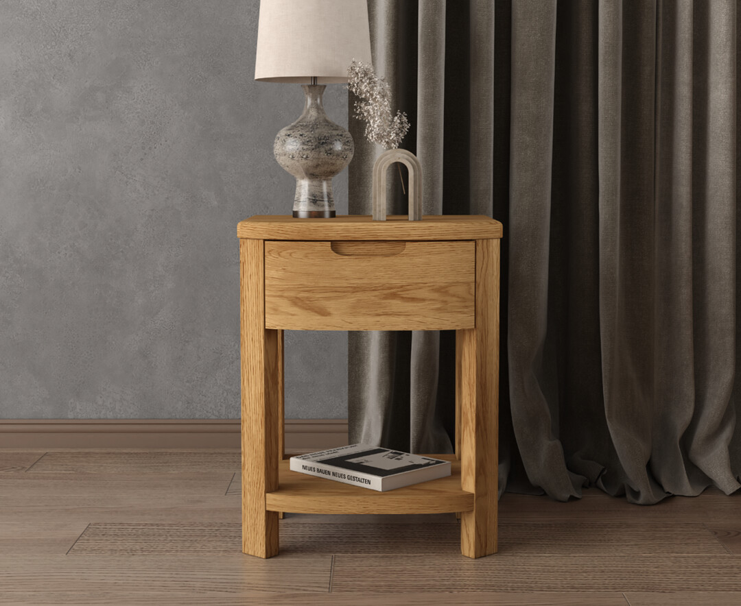 Somerton Curved Solid Oak 1 Drawer Bedside Chest