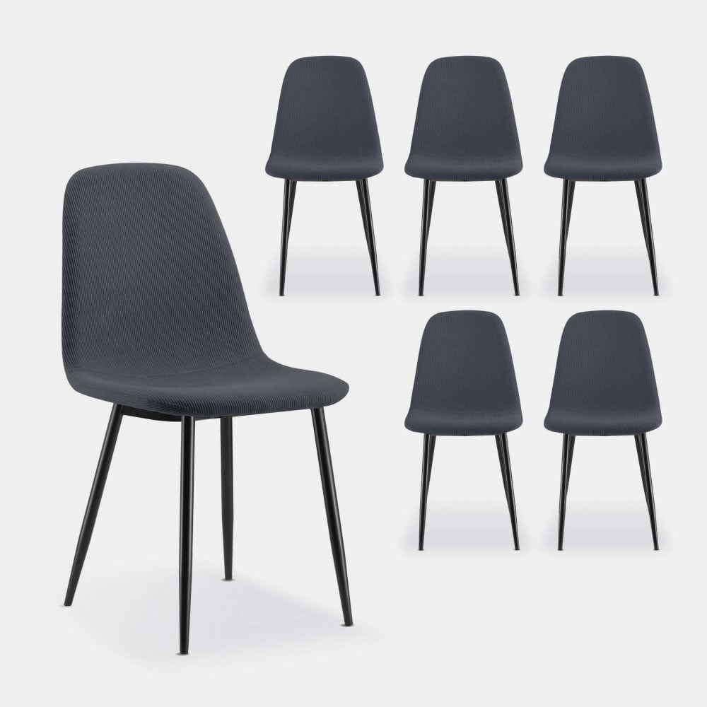 VonHaus Dining Chairs Set of 6 – Charcoal Blue Kitchen Chairs with Black Metal Legs – Upholstered Cord Effect Chairs for Dining Room & Kitchen