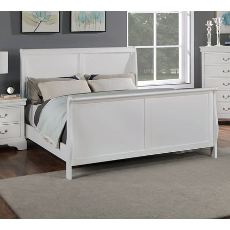 Product Description Product Description:- Smooth surfaces curved panels and detailed lines drape this bedroom set bathed in a White color. This set features a sleigh bed and storage accessories with charming accent door handles offering a French-inspired bedroom décor. Product Dimensions:- Bed :- HB 48 H / FB 30 H Listing Includes :- 1pc Queen Size Bed Only. Nightstand Dresser Mirror And Chest Is Not Included. Simple Assembly Requires: Product Features:- ·Contemporary ·White Color Sleigh Design ·Rubberwood ·Plywood ·Classic Modern Elegance