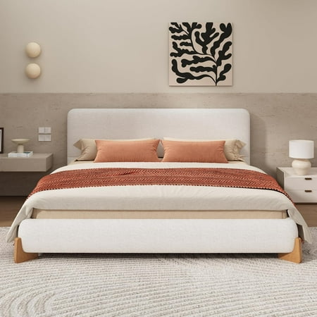 Sturdy Wooden Feet for Lasting Stability: This upholstered bed features solid wood feet that provide exceptional durability and stability. Soft Boucle Fabric for Elegant Comfort: The bed is beautifully covered in soft luxurious Boucle fabric that adds a sophisticated touch to any bedroom. Versatile Design for Any Bedroom Style: With its classic white color and refined design this upholstered bed suits a variety of interior styles. Reliable Support with 12 Slats & 3 : Designed for optimal comfort this bed comes equipped with 12 wooden slats and 3 support . Crafted for Quality and Durability: Each upholstered bed is crafted with care and precision paying close attention to detail to ensure the highest quality.