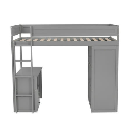 Loft Bed with Desk Wood Loft Bed Frame with Storage Cabinet Bedframe with Ladder and Safety Guardrail for Boys Girls Adult No Spring Box Needed
