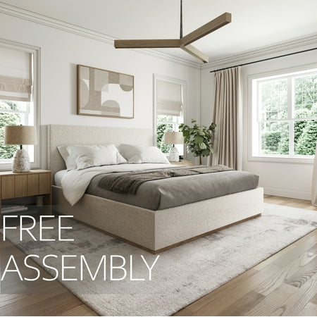 Modern Queen Bed Frame with Headboard – Upholstered King Size – Monaco Bed – Free Assembly Sturdy Wood Platform Bedframe Strong Wooden Slats Strong Weight Capacity Non-Slip and Noise-Free