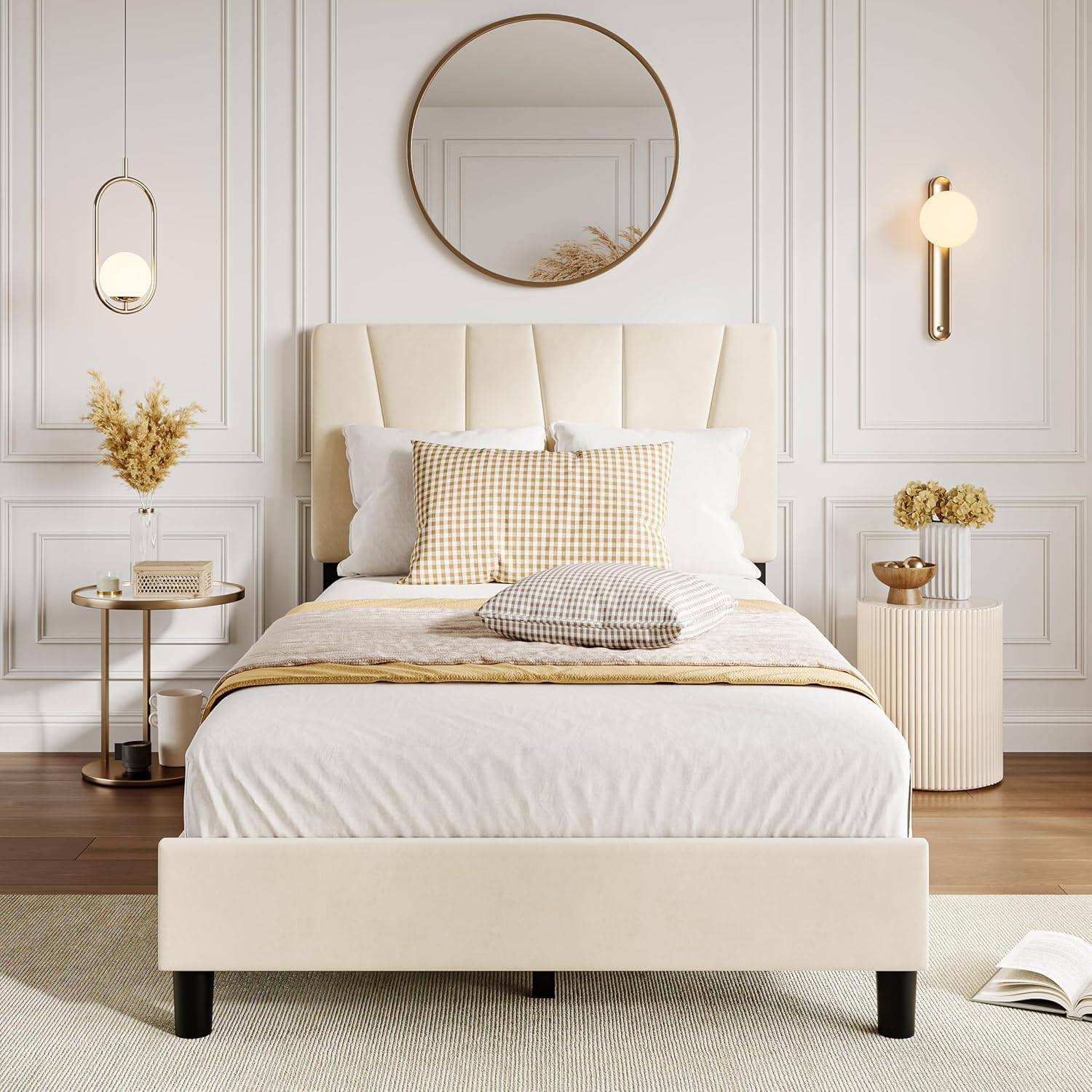 Home Bed Frames Qeetex – Twin Size Bed Frame with Adjustable Headboard Linen Upholstered King Platform Bedframe with Strong Wooden Slats Mattress – As Shown