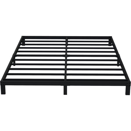 Queen Bed Frame No Box Spring Needed 6 Inch Heavy Duty Metal Platform BedFrame Queen Size with Steel Slats Easy Assembly Black