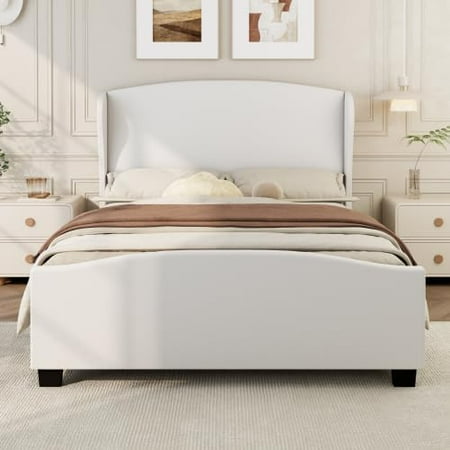Queen Bed Frame with 50.7 High Wingback Headboard and Footboard Modern Corduroy Upholstered Platform Bed Frame Queen Size Bedframe Queen-Size No Box Spring Needed (Beige Queen)